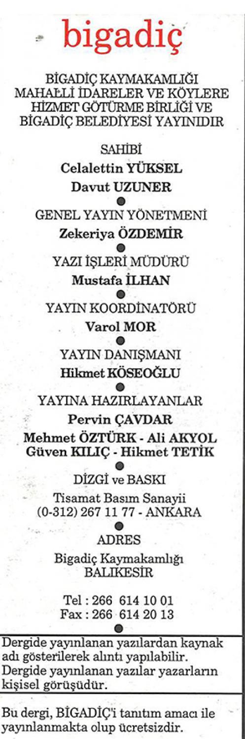 Bigadiç Dergisi'nin Nisan / 1995 tarihli ilk sayısından aldığım aşağıdaki yazı A. Sedat Ulus tarafından yazılmış. A. Sedat Ulus 1984-1994 yılları arasında Bigadiç Belediye Başkanlığı görevinde bulunmuştur.